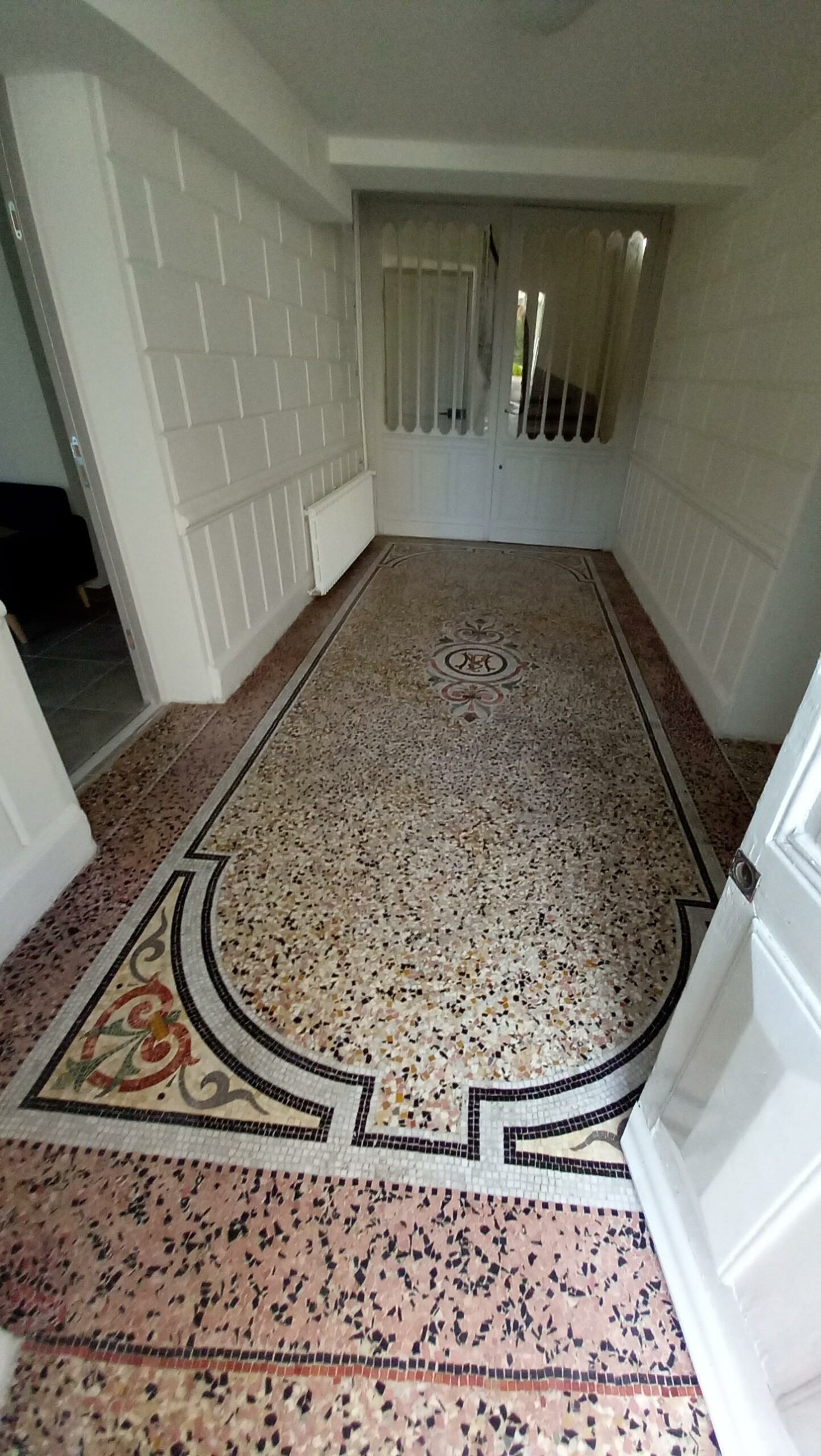 Les travaux se sont efforcés de respecter l’architecture ancienne du bâtiment dans ses éléments principaux : sa façade principale, la porte d’entrée, le sol du hall et l’escalier.